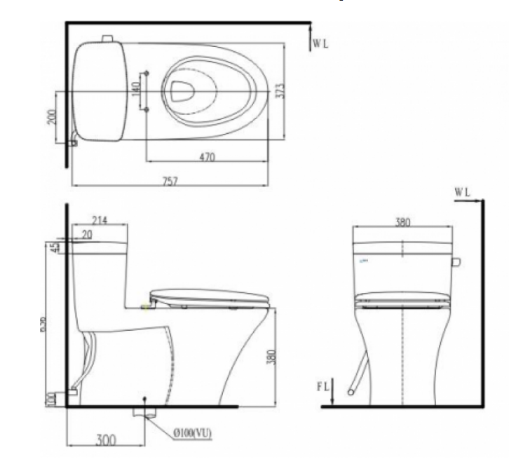 Bản vẽ kĩ thuật bồn cầu nắp rửa cơ Inax AC-991R + CW-S32VN
