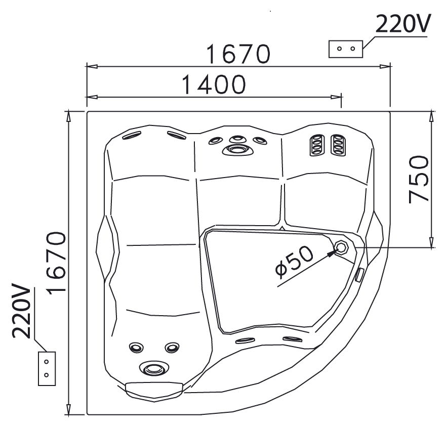 Kích thước: 1670 x 1670 x 780 mm (D x R x C)