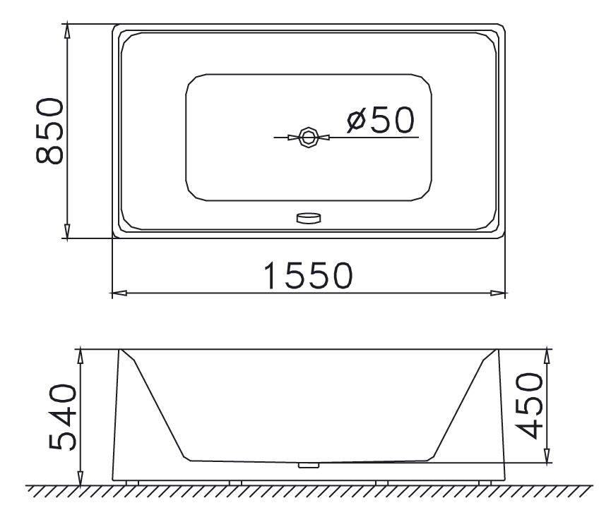 Bản vẽ kỹ thuật bồn tắm dài Caesar AT6350 1.5M