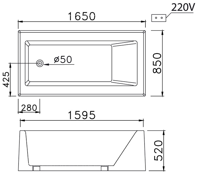 Kích thước (D x R x C) :1650 x 850 x 520 mm