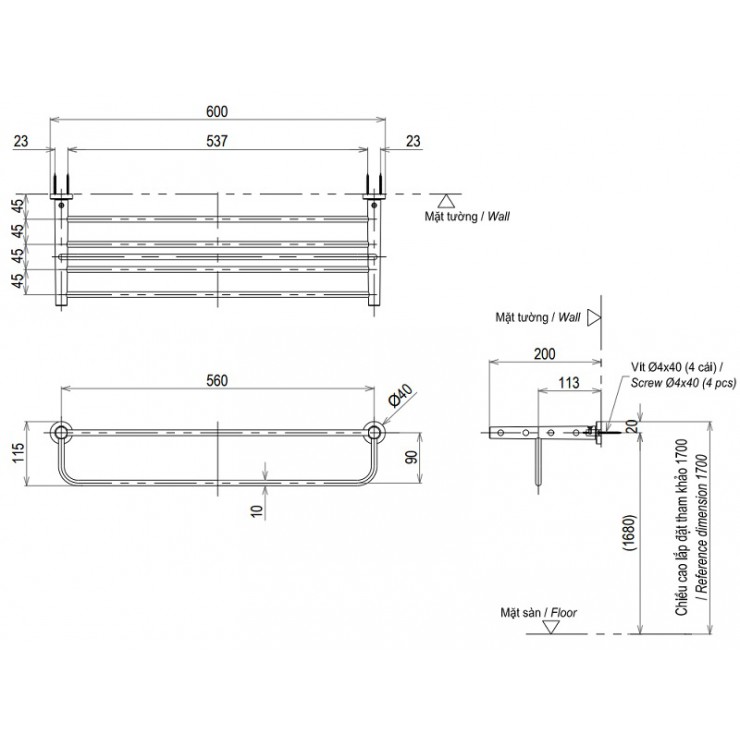 Kích thước : 600 x 200 x 115 mm (dài x rộng x cao)
