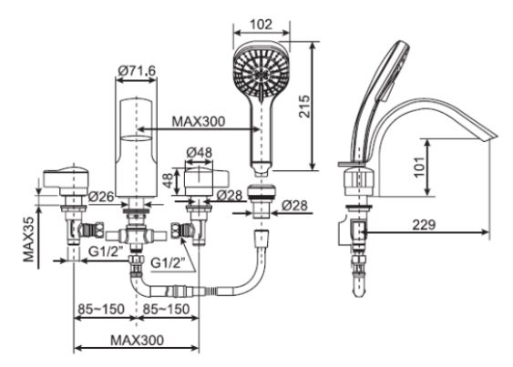 Bản vẽ vòi sen WF-6800 American xả bồn tắm nóng lạnh